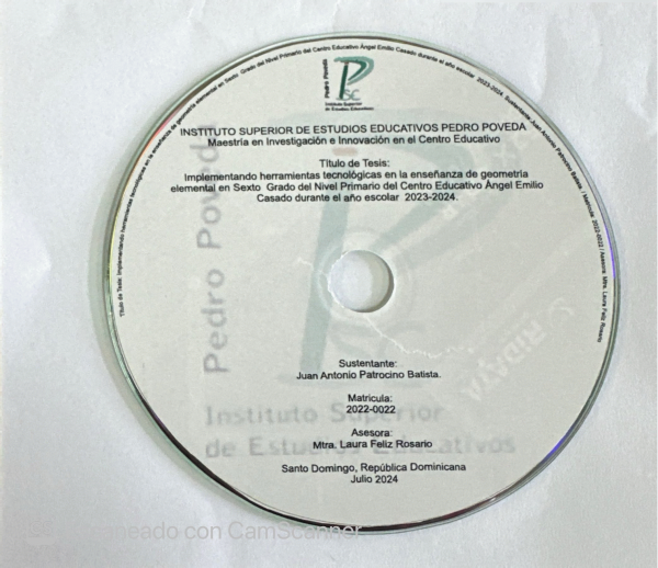 Implementando herramientas tecnológicas en la enseñanza de geometría elemental en Sexto Grado del Nivel Primario del Centro Educativo Ángel Emilio Casado durante el año escolar 2023-2024/ Juan Antonio Patrocino Batista; Asesor Laura Feliz Rosario