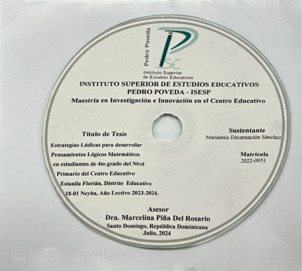 Estrategias lúdicas para desarrollar pensamientos lógicos matemáticos en estudiantes de 4to grado del Nivel primario del centro educativo Estanila Florián, distrito educativo 18-01 Neyba, año lectivo 2023-2024 / Mariannis Encarnación Sánchez ; asesora, Marcelina Piña del Rosario.
