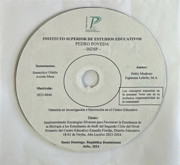 Implementando Estrategias Diversas para Favorecer la Enseñanza de la Biología a los Estudiantes de 6toB del Segundo Ciclo del Nivel Primario del Centro Educativo Estanila Florián, Distrito Educativo 18-01 de Neyba, Año Lectivo 2023-2024. Sumeykys Odalis Acosta Mesa; asesor Pablo Modesto Espinosa Lebrón