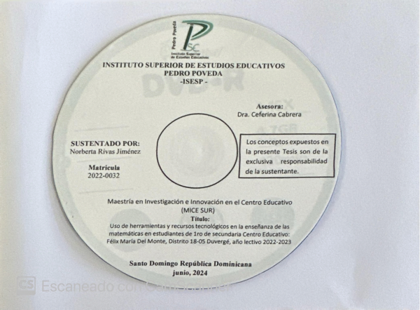 Tesis (Maestría en Investigación e Innovación en el Centro Educativo (MICE)) - Instituto Superior de Estudios Educativos Pedro Poveda, Santo Domingo, 2024